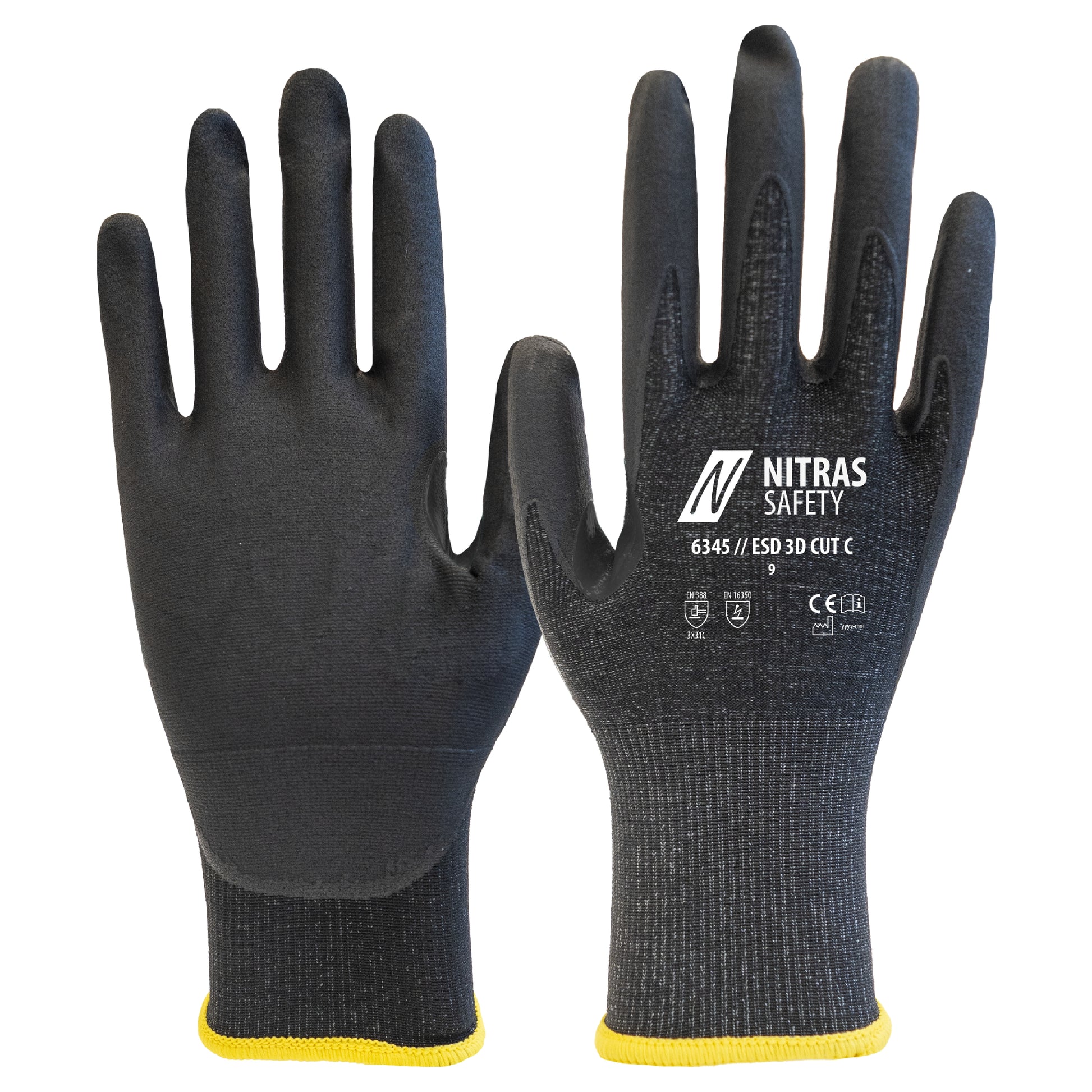 NITRAS ESD 3D CUT C, skærebeskyttelseshandsker, antracit / sort